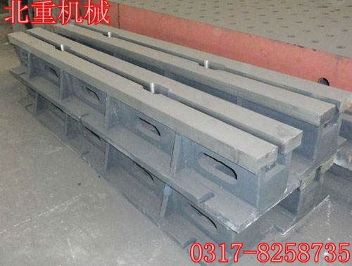 鑄鐵T型槽鐵工作面硬度為HB170-240,經(jīng)過兩次人工處理(人工退火600度-700度和自然時效)使該產(chǎn)品的精度穩(wěn)定,耐磨性能好。鑄鐵地軌、鑄鋼地軌長度規(guī)格可以做成500mm到4000mm以內(nèi)的各種規(guī)格。外形尺寸、每米長度重量要根據(jù)客戶要求承重來確定,北重機械制造免費為客戶設(shè)計圖紙、提供前期服務(wù)!