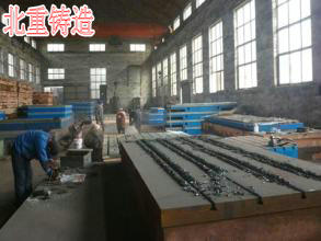 電機試驗平板表面處理:工作面機床加工T型槽,也可帶螺栓孔。表面采用人工鏟刮保證平面精度。非加工面去除型砂,并涂上防銹漆。